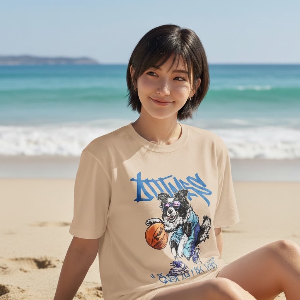 受注Tシャツ: ボーダーコリーの瑠璃(ライトベージュ)